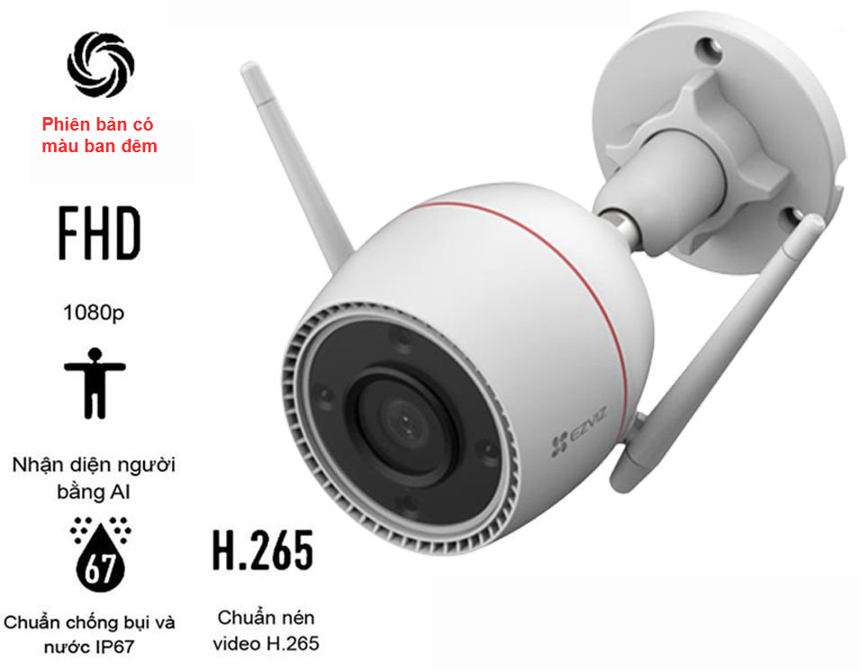 – Hỗ trợ dịch vụ lưu trữ EZVIZ CloudPlay (Phải đăng ký mua riêng)